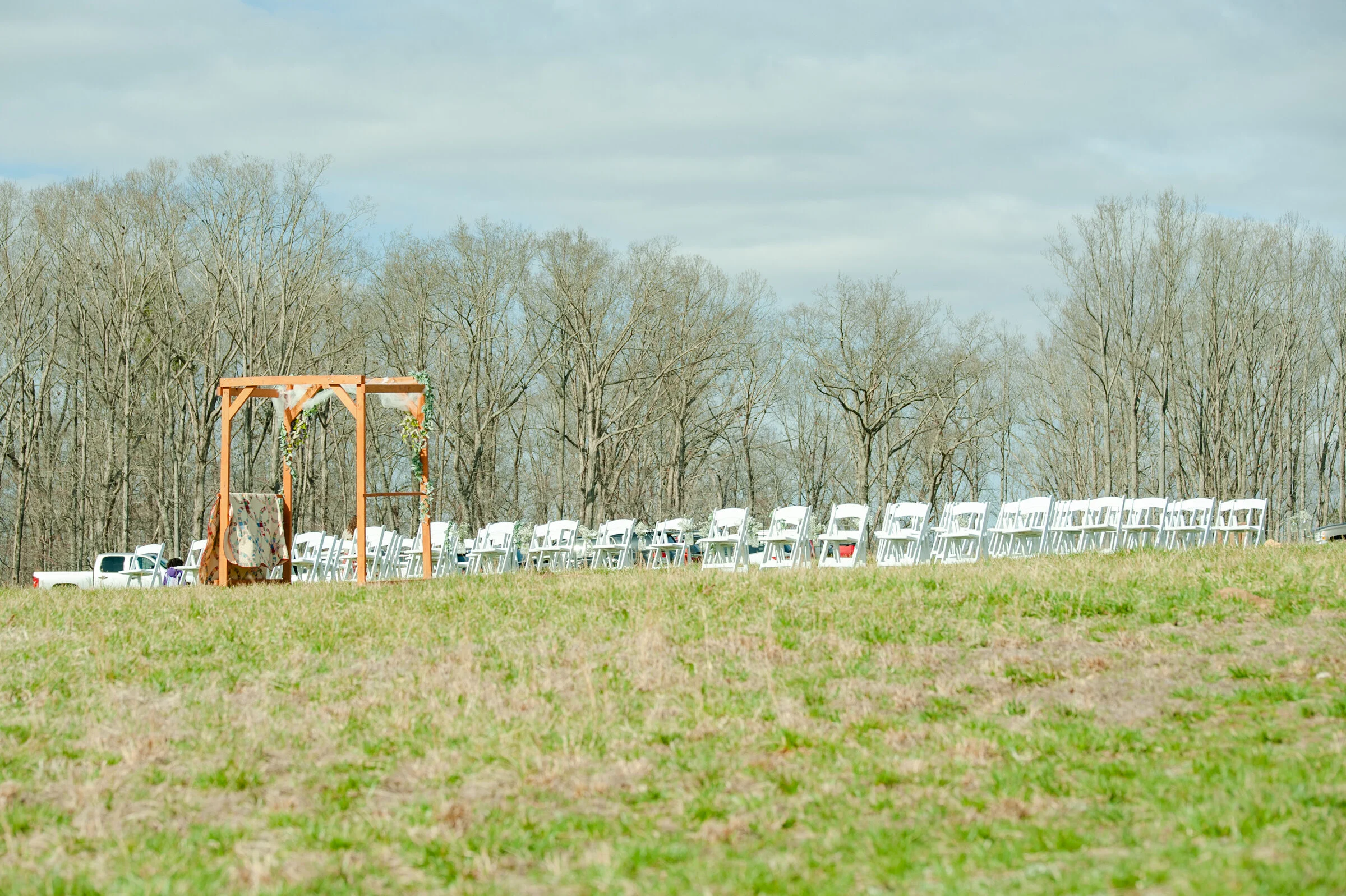 Samantha shared that “one other thing that was special to me was the quilts that hung on the arbor. Blake and I don't have any grandparents left alive. In fact, neither one of us have had grandparents living the whole time we've dated. So we never got to meet any of the other's grandparents. Both of our grandparents played a vital role in our childhoods. I knew we would have their pictures there but I wanted something that made me feel like they were physically there with us during the ceremony. Both of us had grandmothers that quilted so I knew this would be a special sentiment to them to have a physical piece of each of our grandmothers close to us as we said our vows. This was really important to me; something I had planned even before we were engaged. Blake's sister made the arbor for us and she made the posts specifically to hang quilts on so that we could have that in our ceremony. It's one of the most special parts of the day, and I'm so glad that the pictures of us saying our vows have the quilts in the background.”